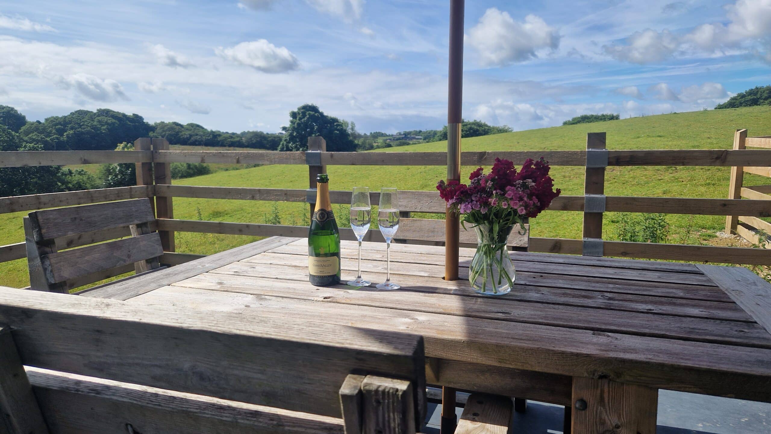 An electric riser recliner chair and comfortable sofa face the French doors, which open onto the patio and fill the room with natural light. On arrival, you’ll be greeted with a generous welcome hamper featuring local Cornish produce, fresh flowers, and a traditional cream tea — a thoughtful touch that sets the tone for a truly relaxing stay.