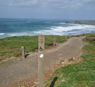 Bedruthan Steps, one of Cornwall’s most breathtaking coastal landmarks, offers visitors spectacular sea views and dramatic cliff scenery. There are excellent accessible routes that allow everyone to experience the beauty of this location. From the National Trust car park, a well-maintained, gently sloping path leads toward the cliff-top viewpoint. This path is compacted and suitable for most wheelchairs and mobility scooters, offering stunning panoramic views of the towering sea stacks and the vast Atlantic Ocean.